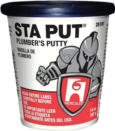 Hercules Sta Put Series 25101 Plumbers Putty, Solid, Off-White, 14 oz