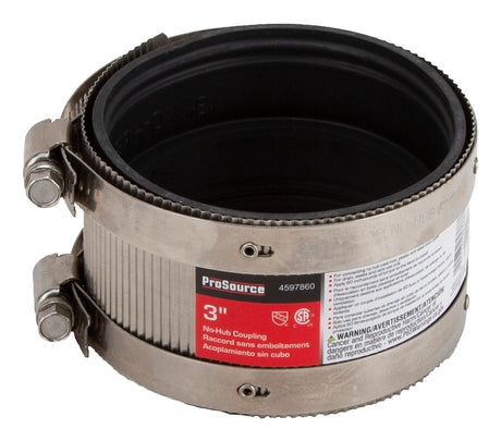 ProSource NHC-33 Coupling, 3 in, Cast Iron, Plastic and Steel Drain Pipes, Rubber/Stainless Steel