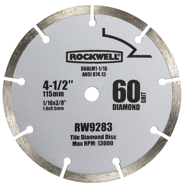 4-1/2 in Segmented diamond saw blade. Fits the RK3441K (Orgill sku 992.4424) Compact circular saw. 60 grit. For cutting, masonry and cement siding.