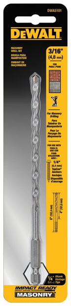 DEWALT Drill Bit, 3/16 in Diameter, 4 in Flute Length, Hex Shank, 1/4 in Shank Diameter, HCS, 6 in Overall Length, Applicable Materials: Masonry