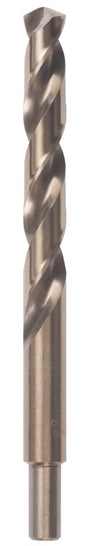 5% cobalt and heavy-duty web construction for higher heat and abrasion resistance, strength and durability. Split point begins drilling immediately, minimizing bit walk in applications such as heavy-duty abrasive alloy metal drilling on hardened steel. Jobber length.