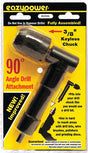 Turns any drill into an angle drill. Fits into drill chuck like you would use a drill bit. Use in hard to reach areas with drill bits, wire brushes, polishers and grinding discs. Completely sealed, never needs lubricating. Not for use in hammer drills. Includes Jacobs 3/8 in chuck.
