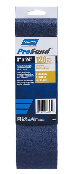 Norton ProSand R811/R816/R831 Series 07660768231 Portable Abrasive Belt, 3 in W, 24 in L, 120 Grit, Medium
