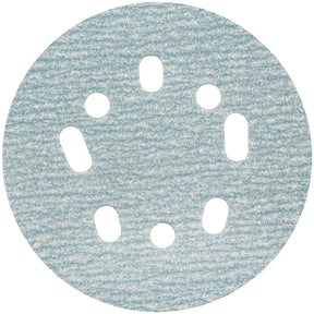 Enjoy a 50 to 60% improvement in tear strength thanks to the flexible fiber reinforced, latex saturated backing of this ProSand A975 medium grit paper H&L vacuum disc. The P-graded, seeded gel ceramic alumina abrasive provides a fast cut rate and long life and the water-based stearate coating and vacuum hold maximum dust extraction while minimizing loading. This disc is a superb choice for finishing and sanding with your random orbital sander and right angle grinder and the hook and loop back makes mounting and changing easy.