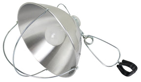 Spring steel clamp, Porcelain ceramic socket. Ball joint for easy positioning. Aluminum reflector, 250 W incandescent bulb maximum, not included. 6 ft, 18/2, SJT-2 cord.
