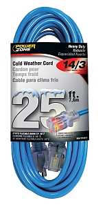 PowerZone Cold Weather Extension Cord provides outstanding performance in extreme climate conditions at temperatures from -58F up to +140F (-50C up to +60C). Cords provide superior resistance to moisture, ozone, and cracking, and are outstanding in resistance to abuse, rough handling, and wear. The Power Indicator Light in the connector shows when there is power through the cord.