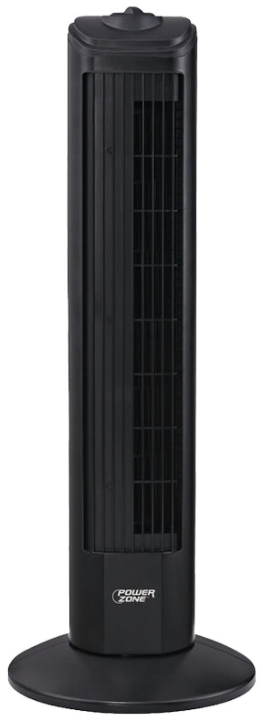 PowerZone TF-28B Oscillating Fan Tower, 120 V, 0.45 A, 90 deg Sweep, 28 in Dia Blade, Plastic Blade, Black