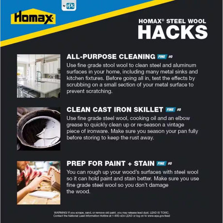 Rhodes American 00 Grade Very Fine Steel Wool Pad 12 pk, Pack of 6