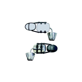 Dual Head XLR Ratchet Clip-On Mirror has patent pending design that securely fits more vehicles than ever. Unique arm design allows mirror to be used on driver and passenger sides without compromise of fit. Precision ratchet allows proper strap adjustment every time. Remove mirror in seconds by pressing quick release button on ratchet. Head features adjustable regular and convex mirror. Arms adjust from 5 to 13".