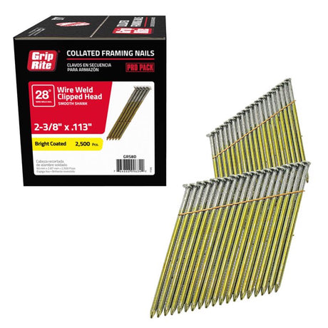 Grip-Rite 2-3/8 in. L X 11-1/2 Ga. Angled Strip Bright Framing Nails 28 deg 2500 pk