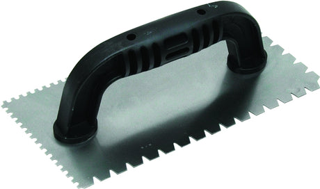 QLT 6263 Trowel, 3/8 in W x 5/16 in D Notch, 9-1/2 in L, 4-1/4 in W, V Notch, Comfort-Grip Handle