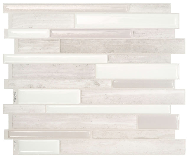 Smart Tiles Mosaik Series SM1104D-04-QG Wall Tile, 11.55 in L Tile, 9.63 in W Tile, Straight Edge, Vinyl, Beige/White, Pack of 6