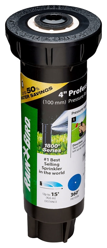 Rain Bird 1804FDSP25 Pressure Regulated Pop-Up Sprinkler, Full-Circle, 3.7 gpm, 1/2 in Connection, FNPT, 4 in H Pop-Up is backordered and will ship as soon as it is back in stock.