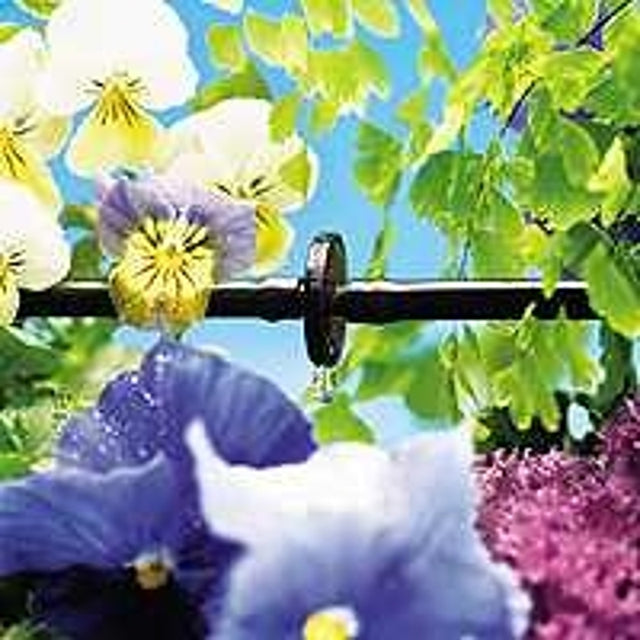Designed for use on level ground and shorter circuits. Self-cleaning turbulent flow dripper for use with 1/4 in tubing. Ideal for medium soil (loam). Color-coded as red/black base.