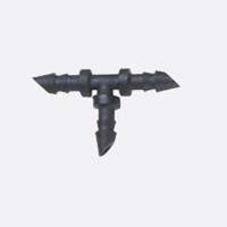 Raindrip 307025B Tubing Tee, 1/4 x 1/4 x 1/2 in Connection, Barb x Barb x Hose, Black