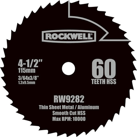 Rockwell RW9282 Circular Saw Blade, 60-Teeth, 4-1/2 in Dia, 3/8 in Arbor