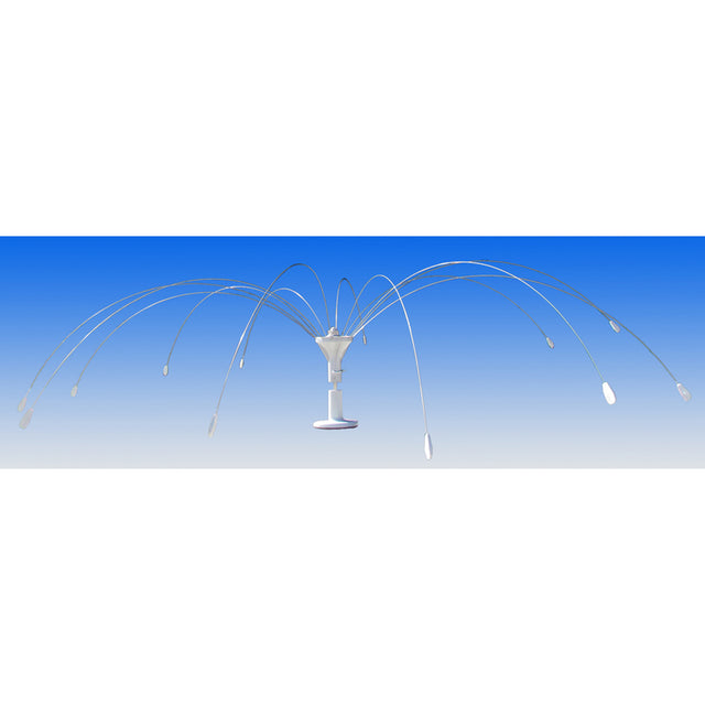 If you are looking for how to keep birds away from a specific area, try the patented Bird B Gone bird spider 360. Bird B Gone Bird Spider 360 is pre-assembled, easy to install and can be used in a variety of settings including boats, docks, Biminis, light posts, air conditioner units, skylights, dock pilings and more. The bird spider 360-degree arms are made of stainless steel attached to a UV protected polycarbonate base. Each arm of the Bird Spider 360 is fitted with polycarbonate tip to assist in movement and prevent scuffing. Each Bird Spider 360-degree comes standard with a glue-on base that can be glued down permanently to flat surfaces. Optional bases available to secure the bird spider 360-degree include a railing mount and a removable sandbag base.