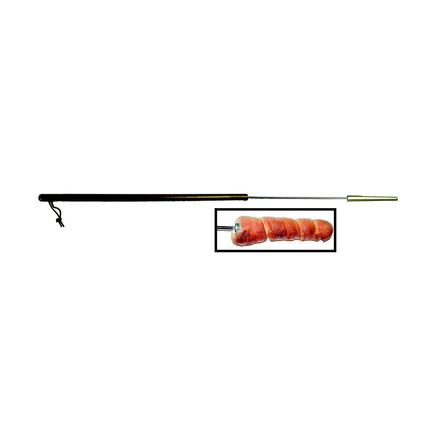 Make hot doughy treats over a campfire using store-bought refrigerated dough (the pop-open tube style) such as buttermilk biscuits" and "crescent rolls. Just roll a "snake" of dough onto the breadstick in a corkscrew fashion. Hold over a fire turning slowly until the dough is golden brown on the outside & puffy on the inside. Slide dough off the stick & fill the cavity with jam, honey, butter, cheese etc... 38" overall length. Chrome plated steel rod, aluminum cooking stick and 21" extra long wood handle with leather hanging strap.