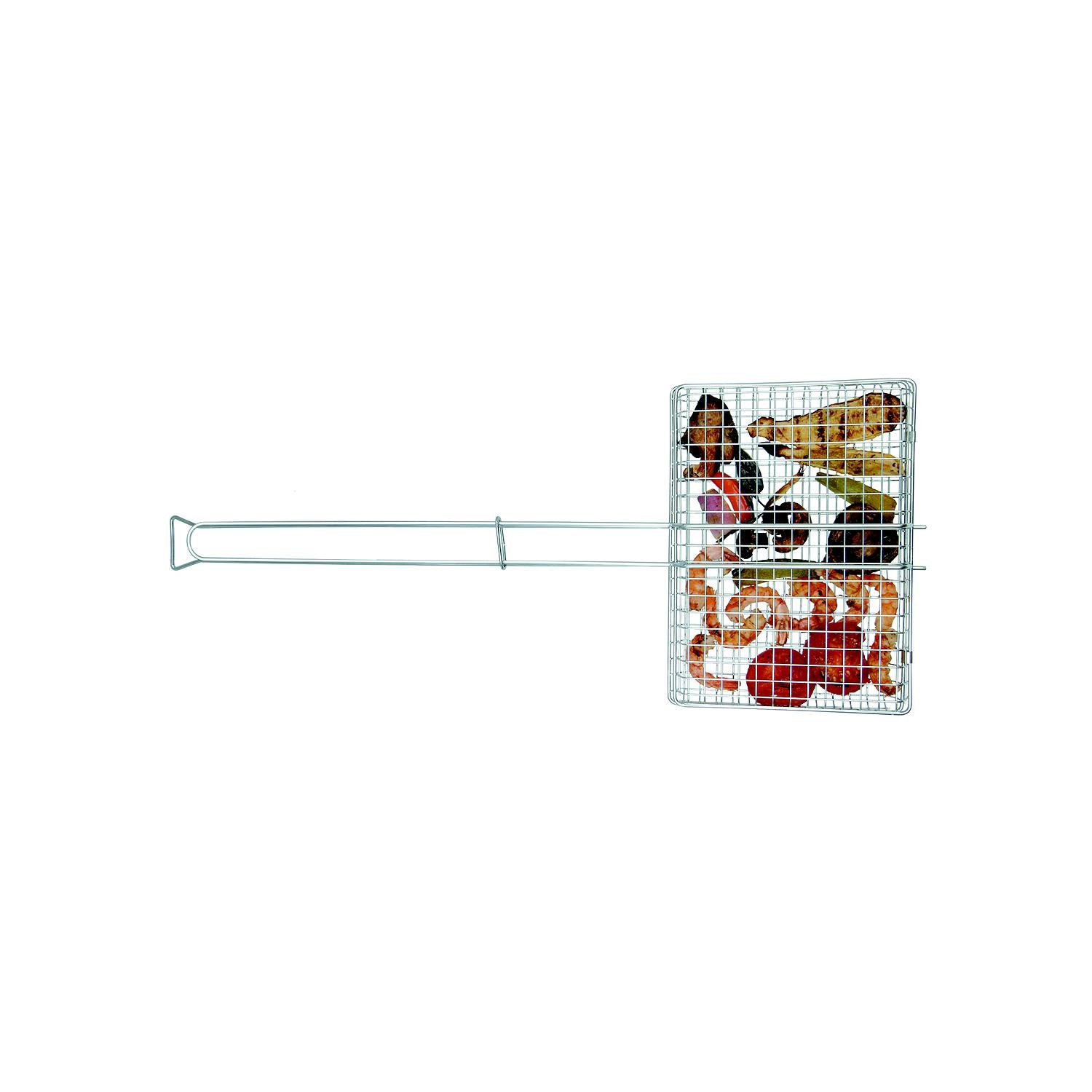 8 x 11" basket, 1-1/2" depth, 29" overall length. Chrome-plated steel. Tight fitting edge and 3/8" wire spacing for veggies and fish.