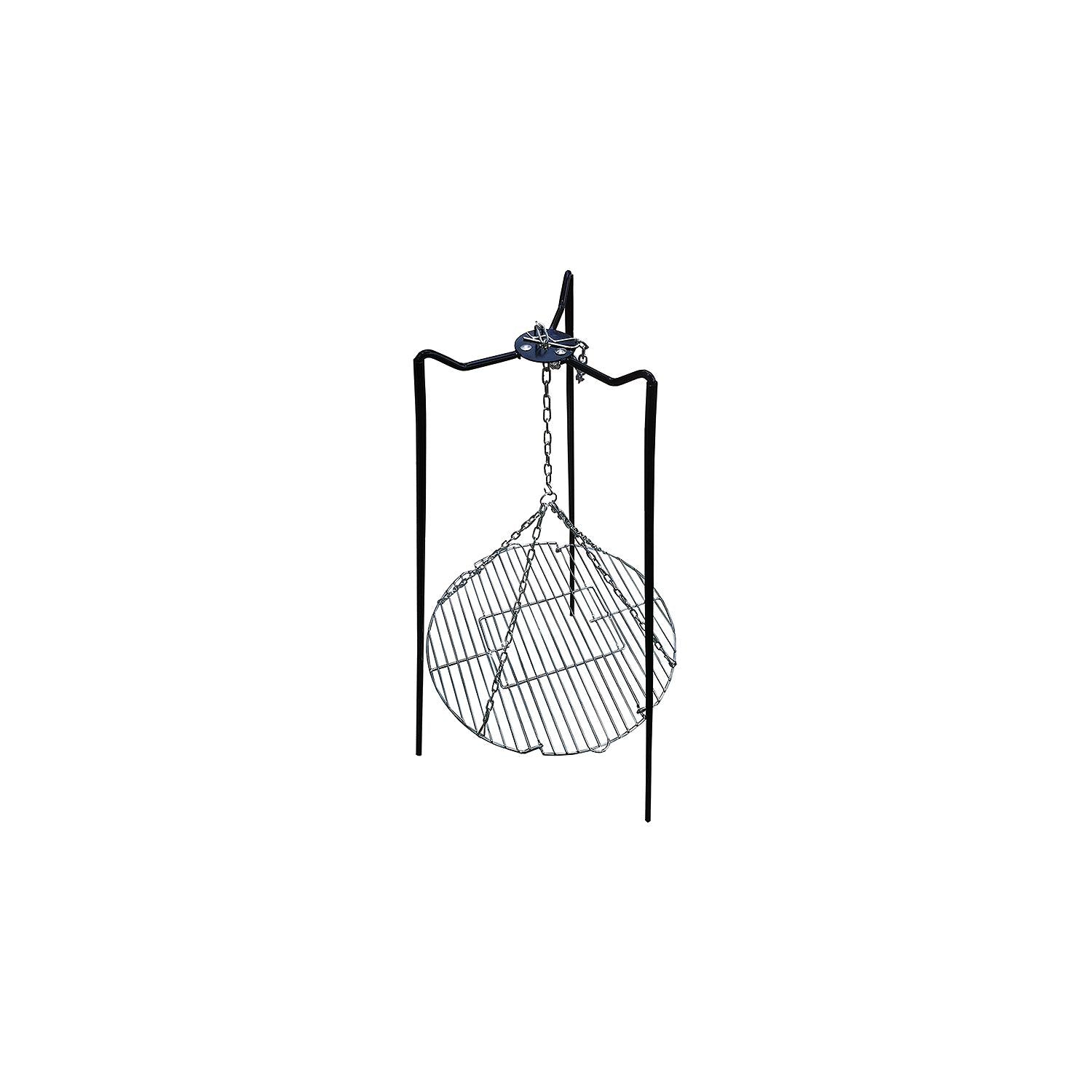 Rome's EZ Tri-Pod grill features a 20.5" diameter grill grate that is vertically adjustable up to 20" over the fire. Tri-pod stands 42" overall height. Entire grill breaks down to a remarkably small 24" x 11" x 3". The grill grate uniquely folds down for compact storage. Perfect for car camping. Assembles in 90 seconds with no tools. Chrome-plated steel grill.