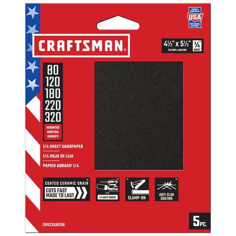 Craftsman 5.5 in. L X 4.5 in. W Assorted Grit Ceramic 1/4 Sheet Sandpaper 5 pk, Pack of 5
