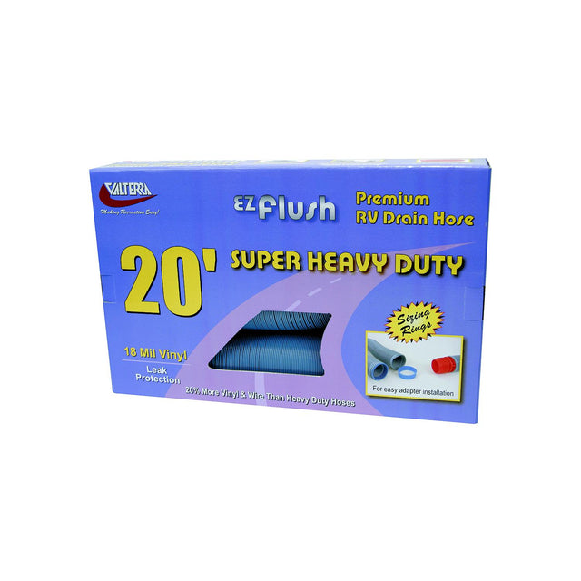 Valterra Slate Blue E-Z Flush Super Heavy Duty RV Drain Hose with Sizing Rings & 90 Degree Sewer Adapter is backordered and will ship as soon as it is back in stock.