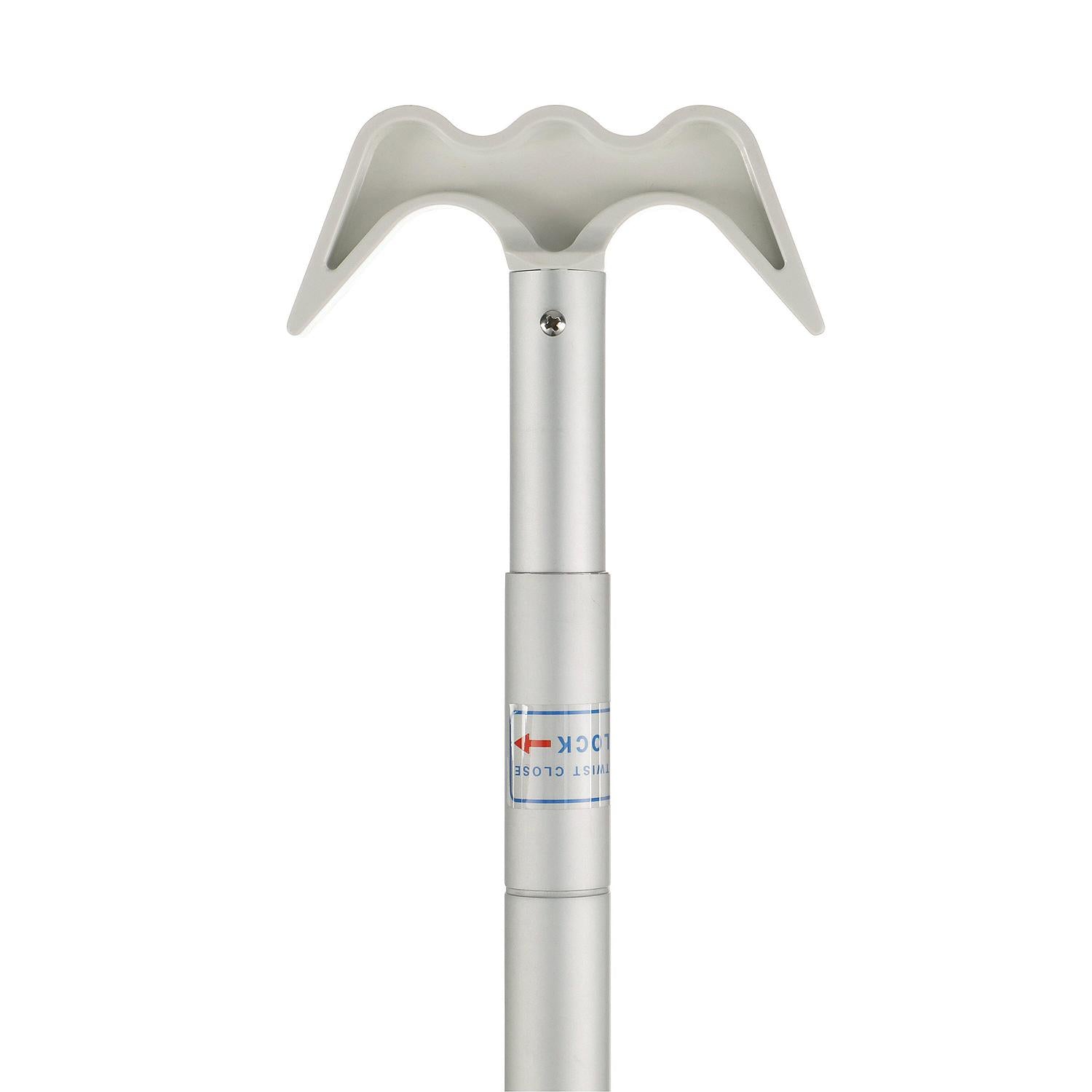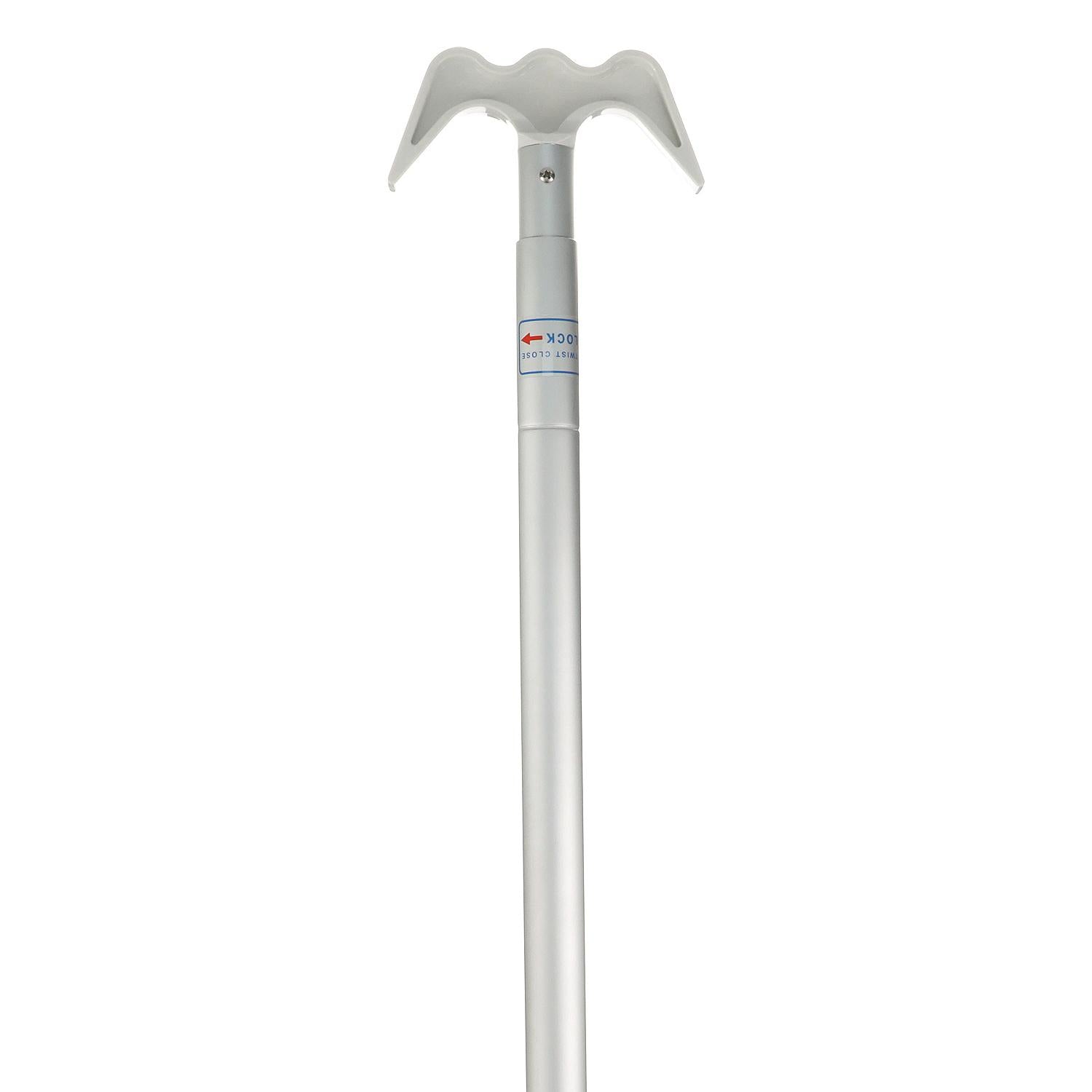 Corrosion resistant anodized aluminum construction with a high impact plastic handle. Handle has a positive non-slip cam lock with a built-in boat hook. Easy stowing.