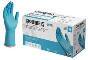 Gloveworks Non-Sterile Disposable Gloves, XL, Nitrile, Powdered/Powder Free: Powder-Free, Blue, 300 mm L, Cuff Type: Beaded, Latex Free: Yes, 7 mil Thick, Exam Grade