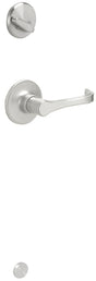 Interior Torino lever and interior single cylinder deadbolt Thumbturn in satin nickel.