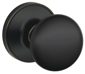 Stratus knob hall and closet lock in aged bronze.