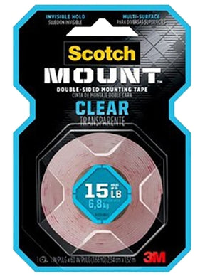 Scotch-Mount clear double sided mounting tape features 3M industrial strength adhesive. Holding up to 6 lb, this invisible tape can be used indoors and is ideal on glass, metal, ceramic tile and acrylic when you want to feature what you are hanging and not how it is hung. For items that need an undetectable mounting means, reach for the stealth adhering power of Scotch-Mount clear double sided mounting tape. Virtually clear, this double sided permanent tape is ideal for mounting glass, tiles and artwork. Its strong bond holds up to 15 lb, without the hassle of nails or a hammer because of its 3M industrial strength adhesive. So whether you're mounting acrylic cosmetic organizers or a translucent picture frame, affix it confidently with Scotch-Mount clear double sided mounting tape.