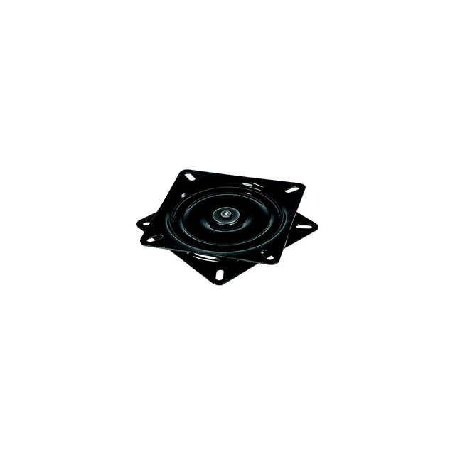 Black coated steel. Swivels 360 degrees. 5-1/4" Hole pattern. Fits most seats. Non-locking.