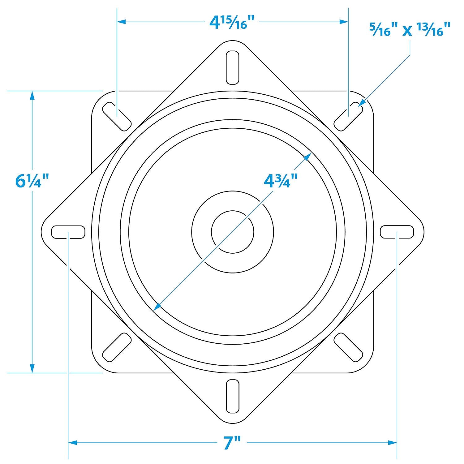 360° swivel. Cadmium plated frame with 6 ball bearings-200 lb. capacity. Specially designed for padded seats. Base and seat hole pattern are adjustable from 4-3/4" to 5-3/4" on centers.