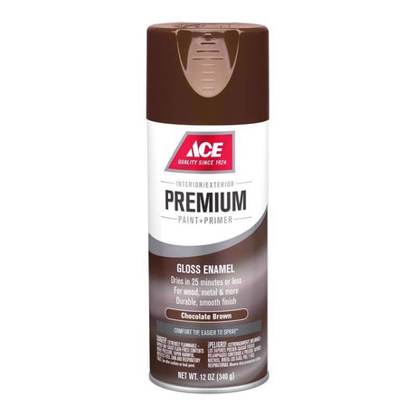 Ace Premium Gloss Chocolate Brown Paint + Primer Enamel Spray 12 oz, Pack of 6