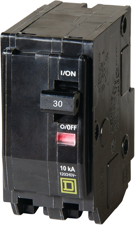 Square D QO QO230C Circuit Breaker, Mini, 30 A, 2 -Pole, 120/240 VAC, 48 VDC, Plug Mounting, Black