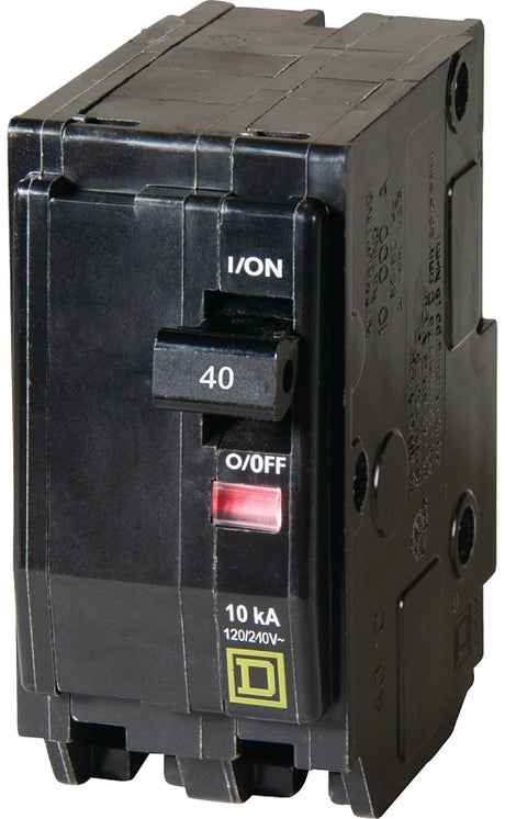 Square D QO QO240C Circuit Breaker, Mini, 40 A, 2 -Pole, 120/240 VAC, 48 VDC, Plug Mounting, Black