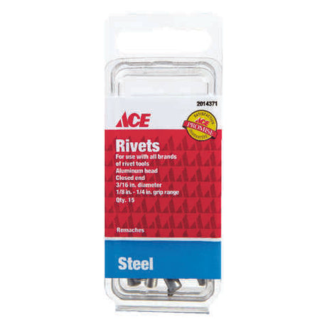 Ace 3/16 in. D X 1/4 in. Steel Rivets Silver 15 pk, Pack of 10