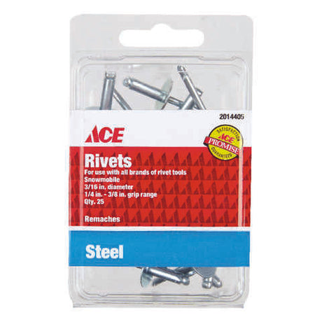 Ace 3/16 in. D X 3/8 in. Steel Rivets Silver 25 pk, Pack of 5