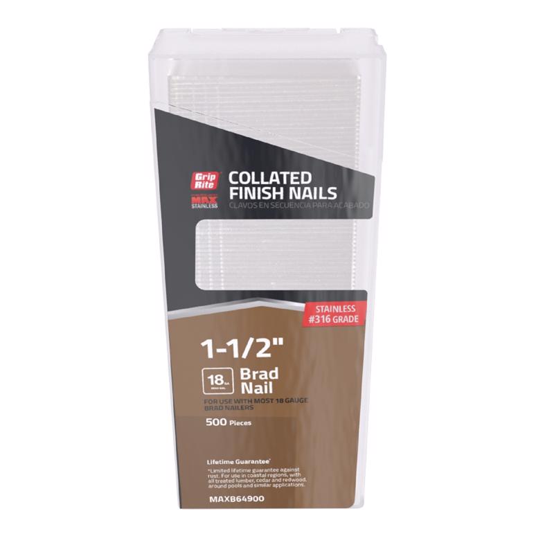Grip-Rite 1-1/2 in. L X 18 Ga. Angled Strip 316 Stainless Steel Brad Nails 1 pk