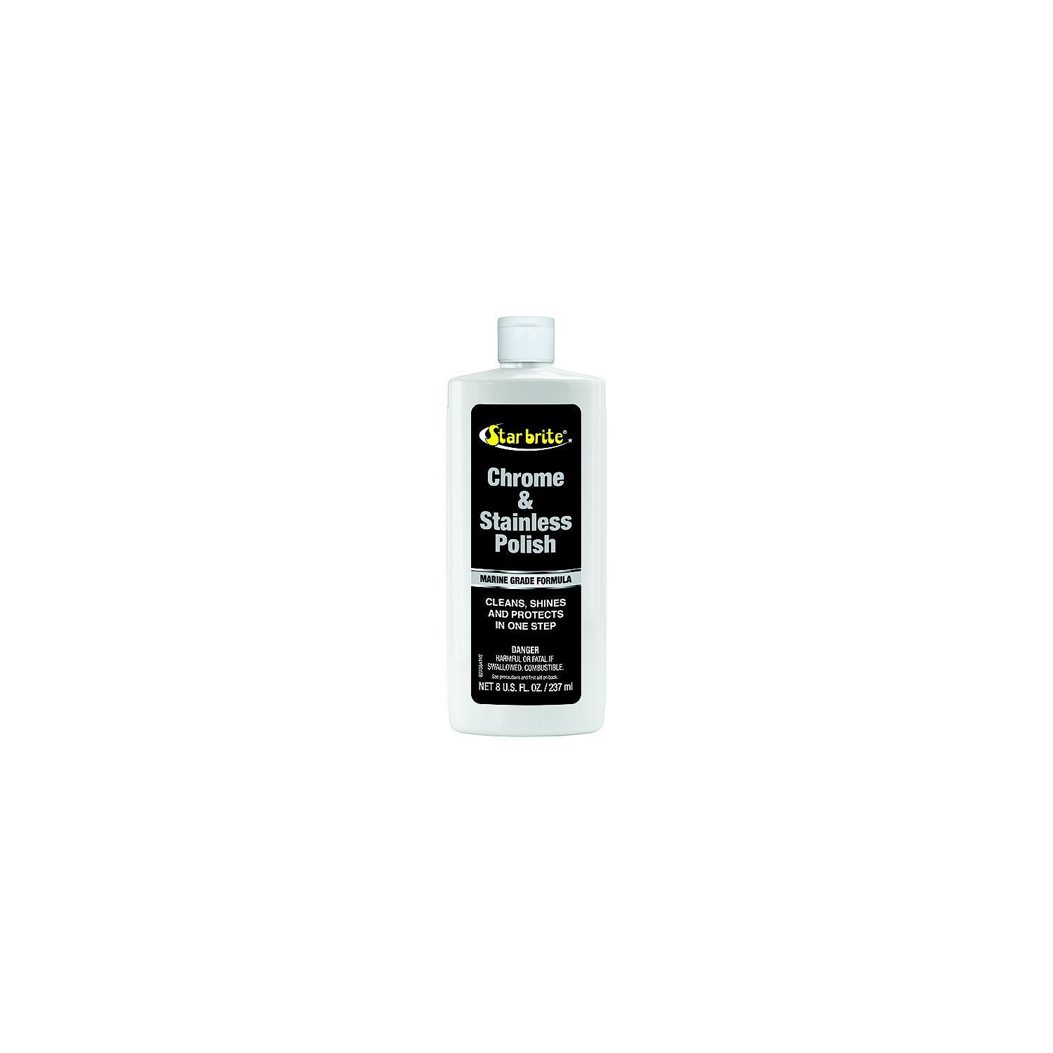 Cleans and shines chrome and stainless steel surfaces. Protects against pitting, discoloration and staining. Easy to use wipe-on, wipe-off formula. Resists salt and water spray. Bonds to metal for long lasting protection.