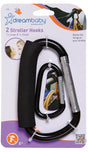 Dreambaby stroller hooks are a brilliant tool for getting about your daily business while your child is in a pram or stroller. They can hold heavy-duty items including handbags, shopping bags and much more, giving you free hands and reducing back pain. Move over other stroller hooks, because here comes the heavy-duty hook that you've been looking for. Before you even leave the house, start clipping everything you need together and walk out with just one handful of things. With the Dreambaby Strollerbuddy EZY-Fit jumbo stroller hook you can do just that! This stroller hook features a carabiner with padded side, ideal for attaching your essentials to your stroller, shopping cart, wheelchair, walker or more. Anywhere the clip will fit! Designed to be durable, this jumbo stroller hook is ideal even for the toughest jobs like purses, diaper bags, groceries and other personal items. It conveniently keeps everything within arm's reach so you don't have to dig through stroller baskets to find a snack, toy or cellphone. You don't even have to slow down. The clip design ensures that your items cannot slide on or off, but is still easy enough to operate with just one hand. It's the ultimate in accessibility. Each package contains one Dreambaby Strollerbuddy EZY-Fit jumbo stroller hook and one Dreambaby Strollerbuddy EZY-Fit stroller hook to fit over most strollers, shopping carts, wheelchairs, walkers or more. Always ensure not to overload stroller so that stroller does not tip over.