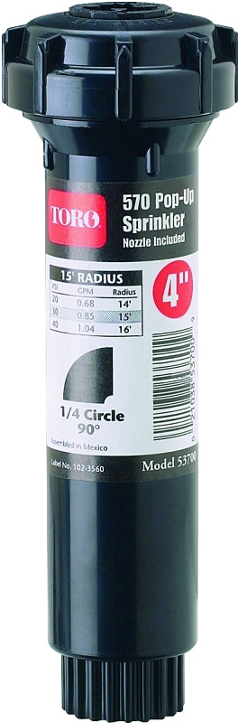 Toro 53712 Spray Sprinkler, Black, Full-Circle, 1/2 in Connection, 5 to 15 ft, 27 deg Nozzle Trajectory