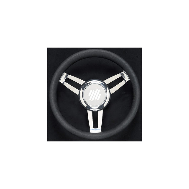 The equidistant stainless steel spokes and polyurethane leather look grip make the Foscari a perfect solution for hydraulically steered boats. Features 3/4" tapered shaft with multi-positioning hub that fits nearly every steering helm.