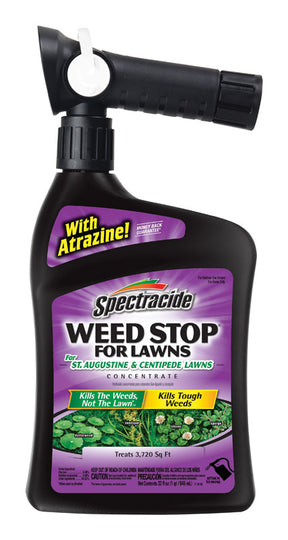 The Spectracide Weed Stop For Lawns For St. Augustine & Centipede Lawns Concentrate (Ready-to-Spray) kills tough weeds, including dollarweed, clover, sandspur and spurge. Simply attach the easy-to-use product to a hose and spray to apply.
