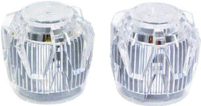 Made of clear plastic material. Includes one hot and one cold handle. 1-3/4 in H x 3/8 in ID. With screws.