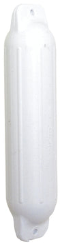Molded one-piece construction of white marine vinyl. Smooth, round shape assures fewer hull abrasions. Grommets are integrally molded into each end to allow easy vertical or horizontal use.