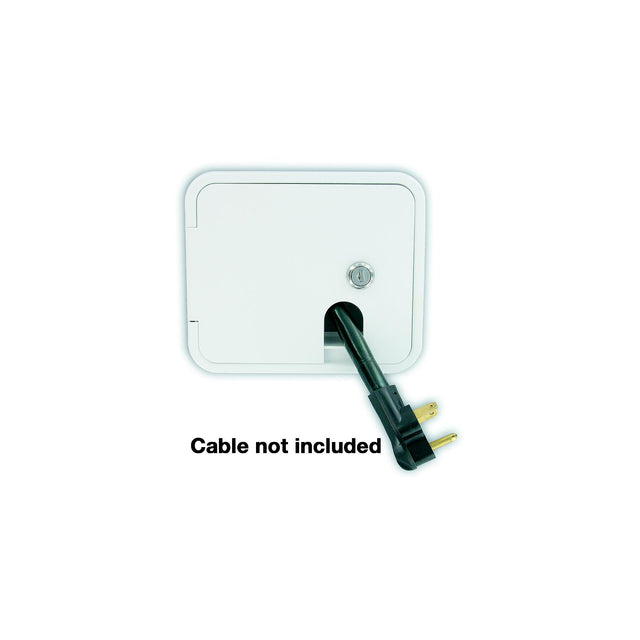 Replacement electrical hatch designed for 50 amp cables. It has a 1.5" deep cavity to hold the cable end with a slide window so you can close the door when hooked up. Installation tape and hardware are included for a consumer friendly installation. Hatch door can lock with either a key or thumb lock, which are both included.