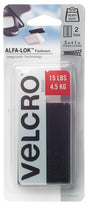 Recommended for semi-permanent mounting of items that are infrequently moved. Need to install outdoor security cameras, solar lights. Mount a first aid kit behind the door. Need to get the job done quickly no worries set it and forget it. ALFA-LOK fasteners pack super strong holding power into mere inches of hook-to-hook engagement. Two sets of 3 x 1 in strips can hold as much as 15 lb of weight. VELCRO Brand ALFA-LOK fasteners omni-directional hook-to-hook fastener works like a charm even in extreme conditions and because they are omnidirectional, you can easily mount cameras, lights, sensors and solar-powered accessories indoors or out. No tools required. On a broad range of surfaces. Apply to a clean, dry surface, allow the adhesive to set and snap, youâ€re done. ALFA-LOK fasteners are strong enough for outdoor, vertical applications even in extreme temperatures. They will hold fast through rain, snow and sweltering heat while supporting up to 2.5 lb/sq-in, not to exceed 15 lb. The snap tells you itâ€s securely fastened.