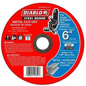 Diablo DBDS60045101F Type 1 Cut-Off Disc, 6 in Dia, 0.045 in Thick, 7/8 in Arbor, Ceramic Abrasive