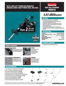 Makita XUX02ZX1 Cordless Power Head Kit, 0 to 5000, 0 to 7000 rpm